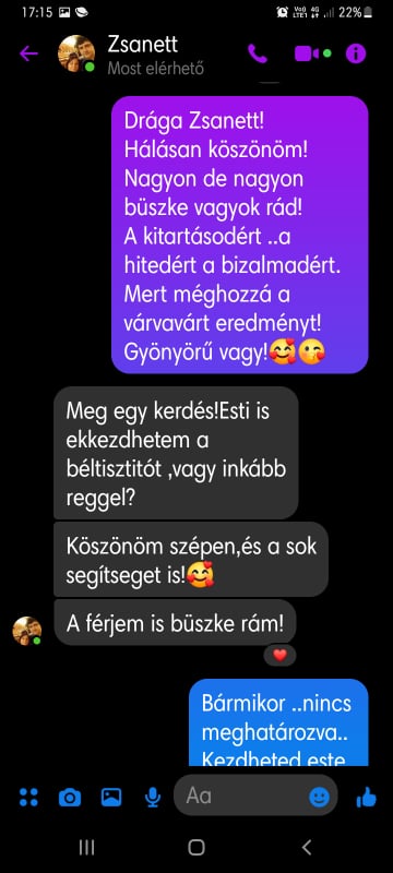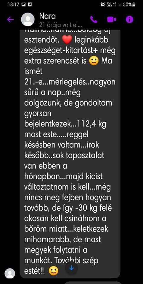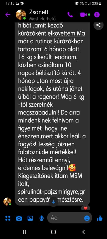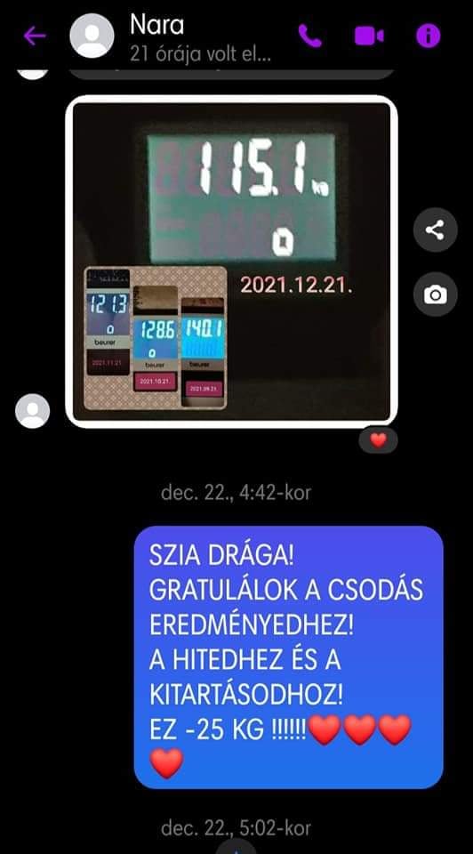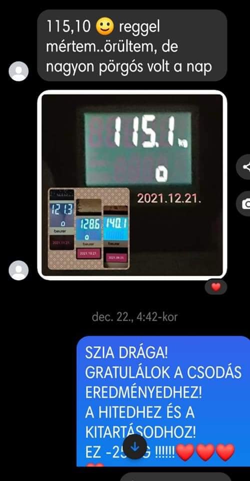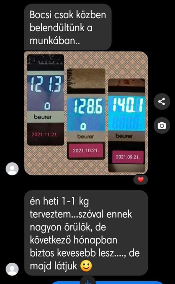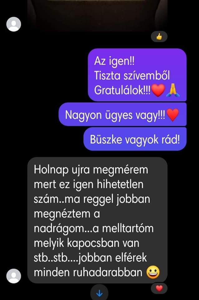 “4 hónap alatt 11 kiló ment le , a vérnyomásom helyre állt ami a program előtt mindig magas volt! Kevésbé visel meg az allergiám és sokkal jobb a közérzetem! Tartom az étrendet a program után is .A súlyomat tudom tartani amit elértem én maradok ennél az életmódnál! Csak ajánlani tudom mindenkinek! Nekem ez szuper jól bevált ❤️”